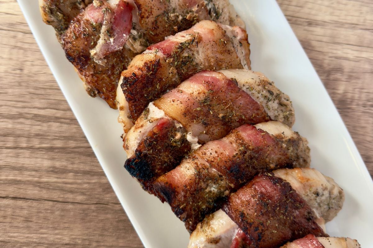 Juicy, tender pork tenderloin wrapped in crispy bacon, basted with garlic herb butter, this dish is packed with flavor AND keto-friendly.