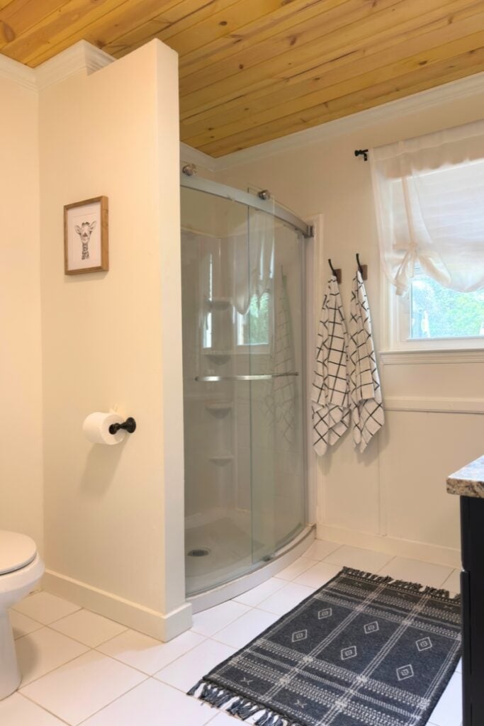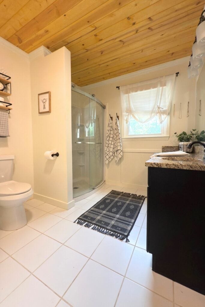 Basement Bathroom Makeover + New Tongue and Groove Wood Ceiling