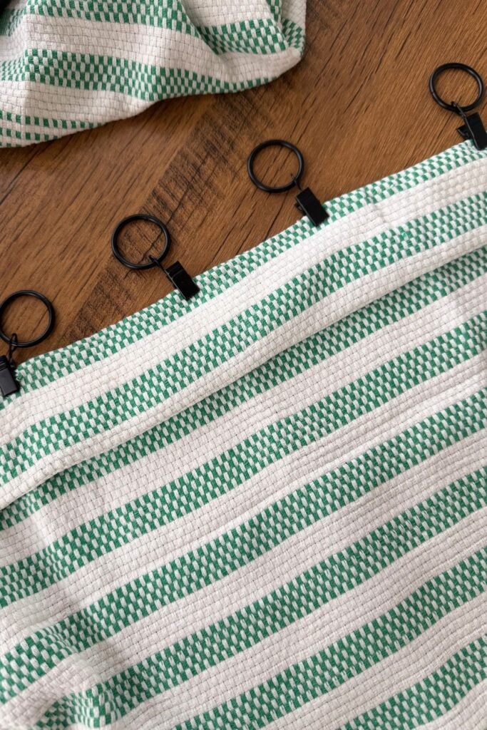 Clip the curtain rings onto the folded hem. The rings make it super easy to slide the curtains open and closed, which is great for daily use.