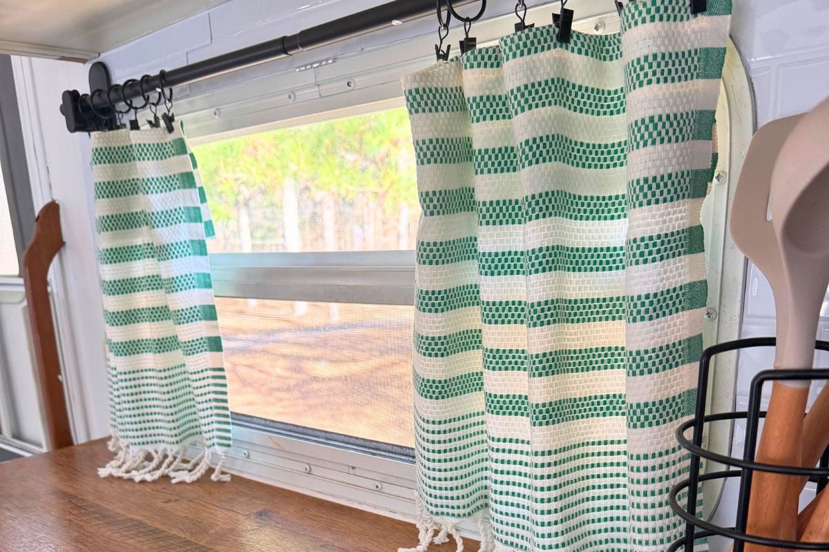 We chose Turkish towels because they’re the perfect balance of function and style — thick enough to provide privacy, yet lightweight enough to handle heat and constant movement. If your camper gets a lot of sun, these are an especially great option.