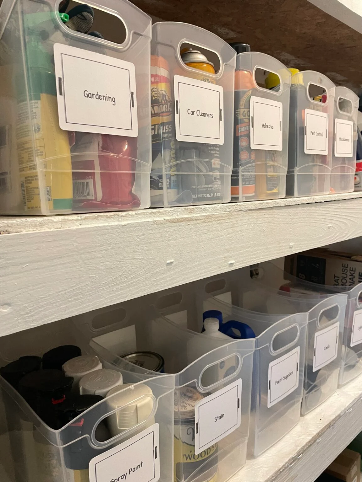 For my plastic storage bins, I bought the Avery Shipping Labels (3-1/3 ” x 4″) and used template 12564.