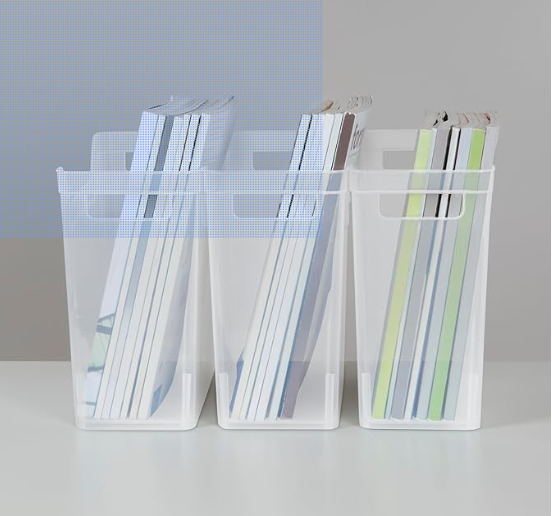 These particular bins are the Mainstay Plastic Utility bins from Walmart- they’re under $6 each (in my area, anyway!) and SO versatile- you can find them here.