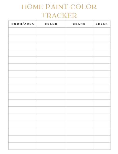 - Home Paint Color Tracker + Paint Labels – record brand, color, sheen, and room.