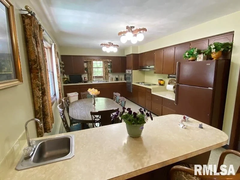The previous owners removed the original dining room to stretch the kitchen into that space.